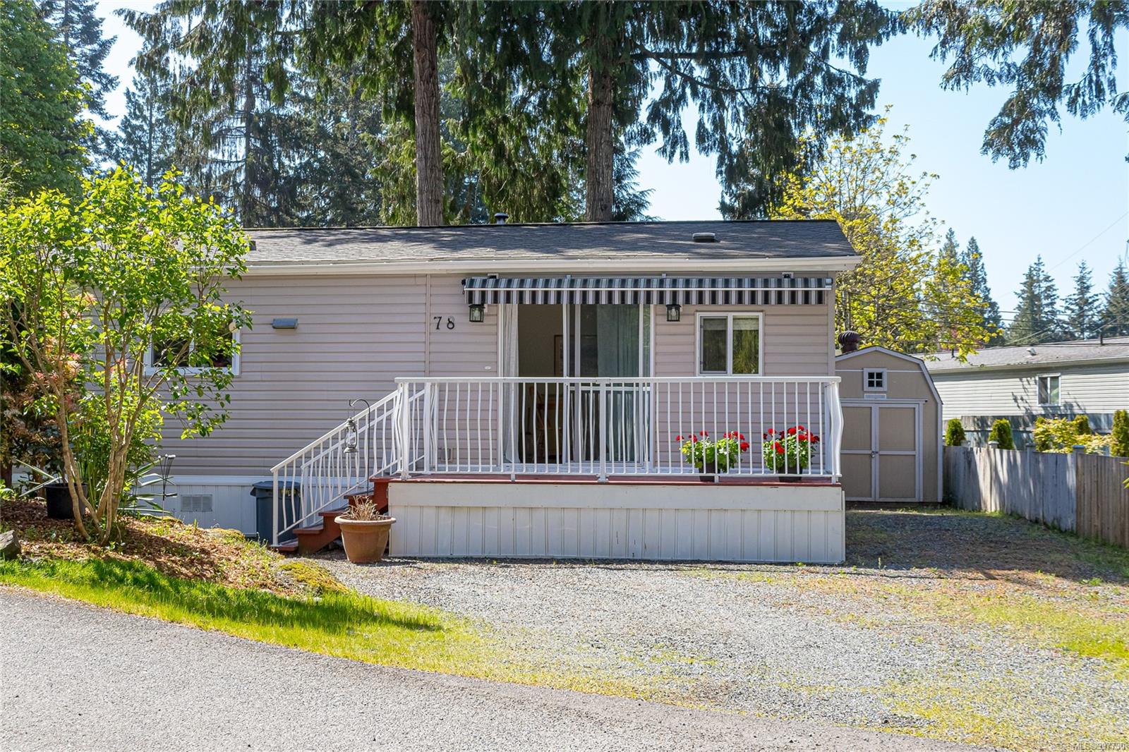 Adult-Oriented Neighbourhood, Awning(s), Balcony/Deck, Fencing: Partial, Garden, Landscaped, Level, Low Maintenance Yard, Park Setting, Primary Bedroom on Main, Quiet Area, Recreation Nearby, Rural Setting, Serviced, Shopping Nearby, Southern Exposure, Storage Shed