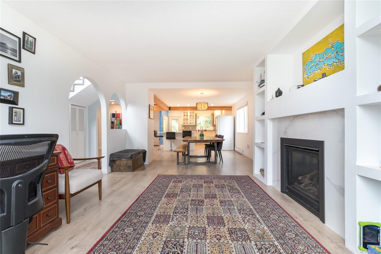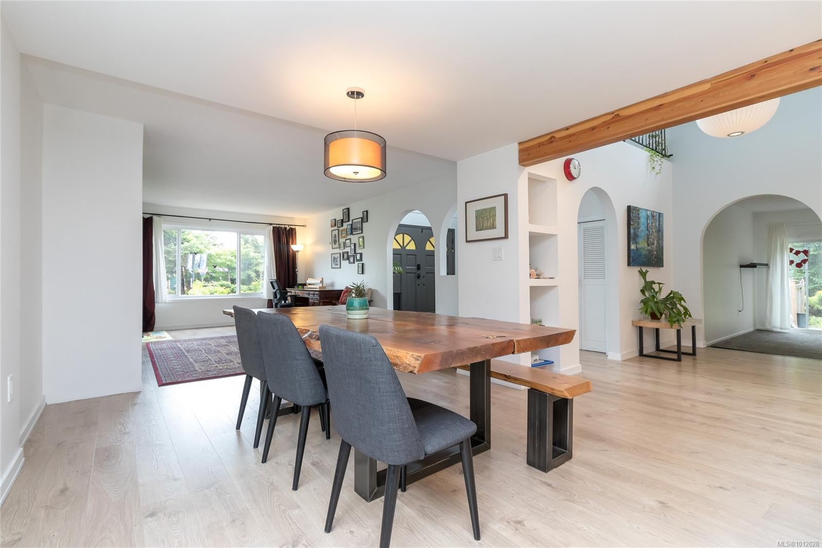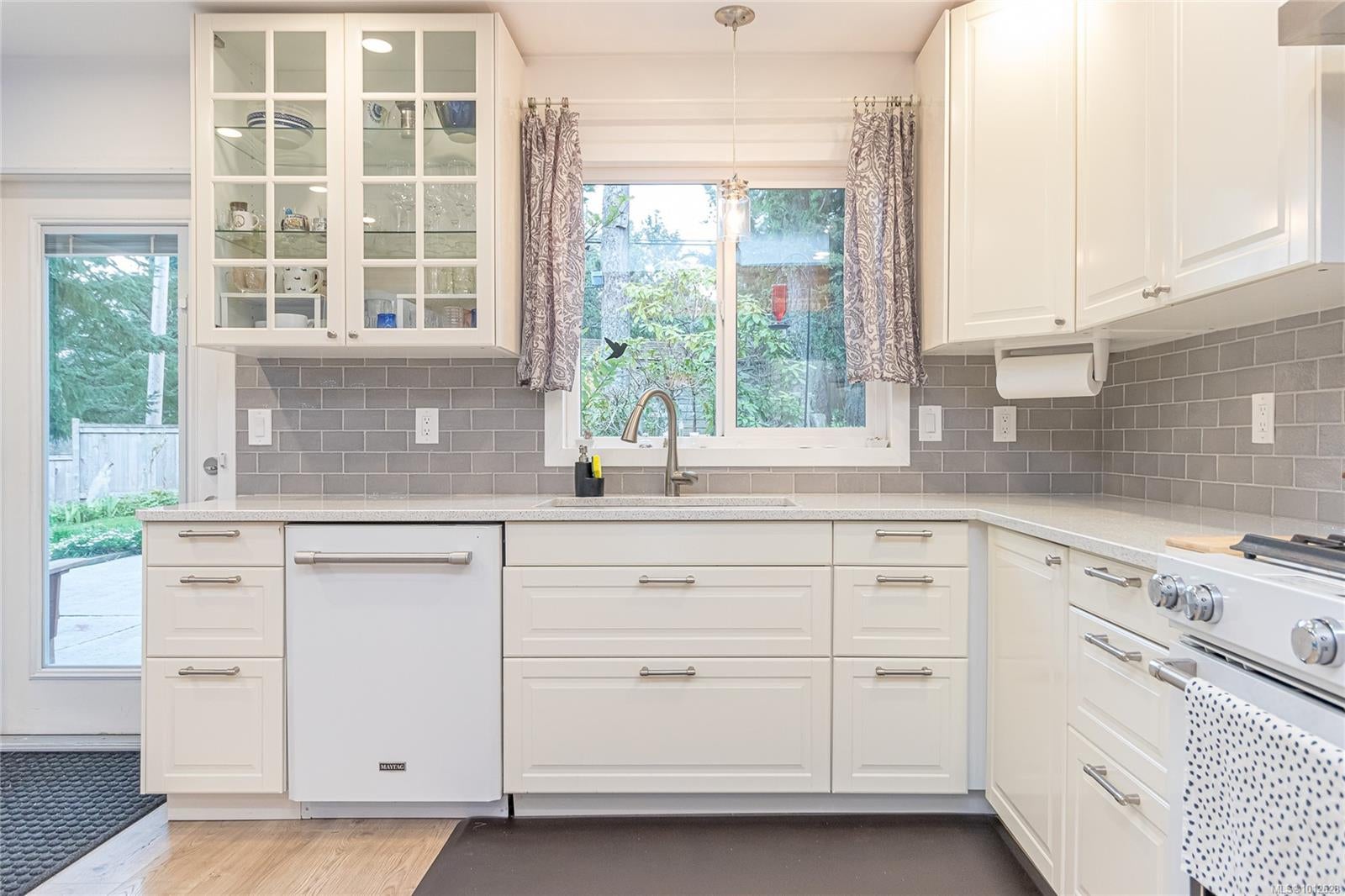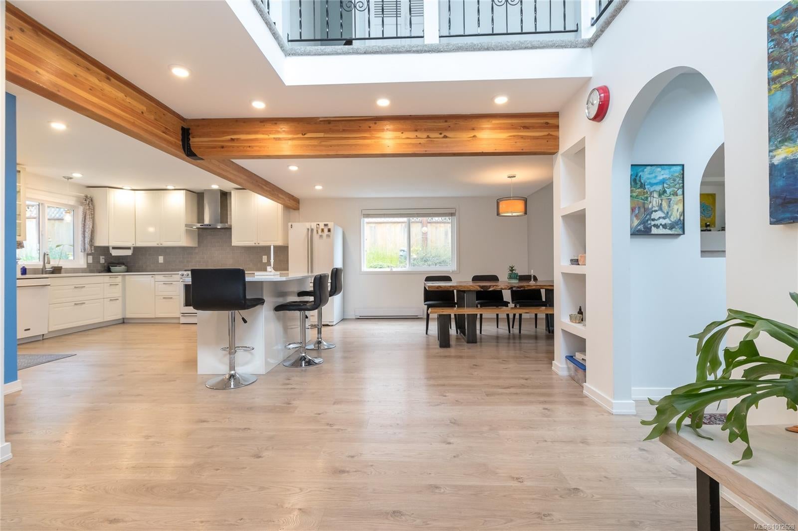 Perched on a quiet cul-de-sac in North Nanaimo, this stunning family home on a .35-acre corner lot offers the perfect blend of nature, space, and style. With ocean and mountain views, this 4-bedroom, 3-bathroom home is ideal for those seeking both tranquility and convenience. Inside, a bright, open-concept layout combines contemporary finishing with classic Spanish architectural details, including arched doorways, a winding staircase with wrought iron railings, and modern tasteful updates throughout. The renovated kitchen flows seamlessly into the main living area, anchored by a cozy gas fireplace, while a wood-burning fireplace adds warmth to the spacious family room. Upstairs, four generous bedrooms include a private primary suite with a walk-in closet and 3-piece ensuite. Outside, the fully fenced backyard features garden beds and a patio ideal for entertaining or relaxing summer evenings, serenaded by frogs and the distant call of owls. With a double garage, two driveways and ample parking for a boat or RV, this home is as practical as it is picturesque. Additional features include hot water on demand, a fully fenced landscaped lot, and a location that is mere steps to Lost Lake Trail and Linley Valley’s scenic walking, biking, and hiking paths. This is more than a home—it’s a lifestyle inspired by nature, comfort, and timeless design. Make your appointment to view this one-of-a-kind home today before it is gone! All measurements are approximate and should be verified if important.