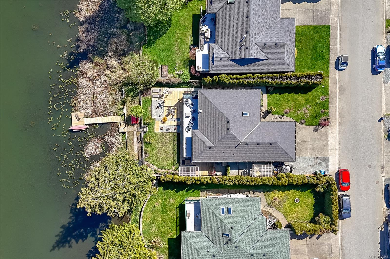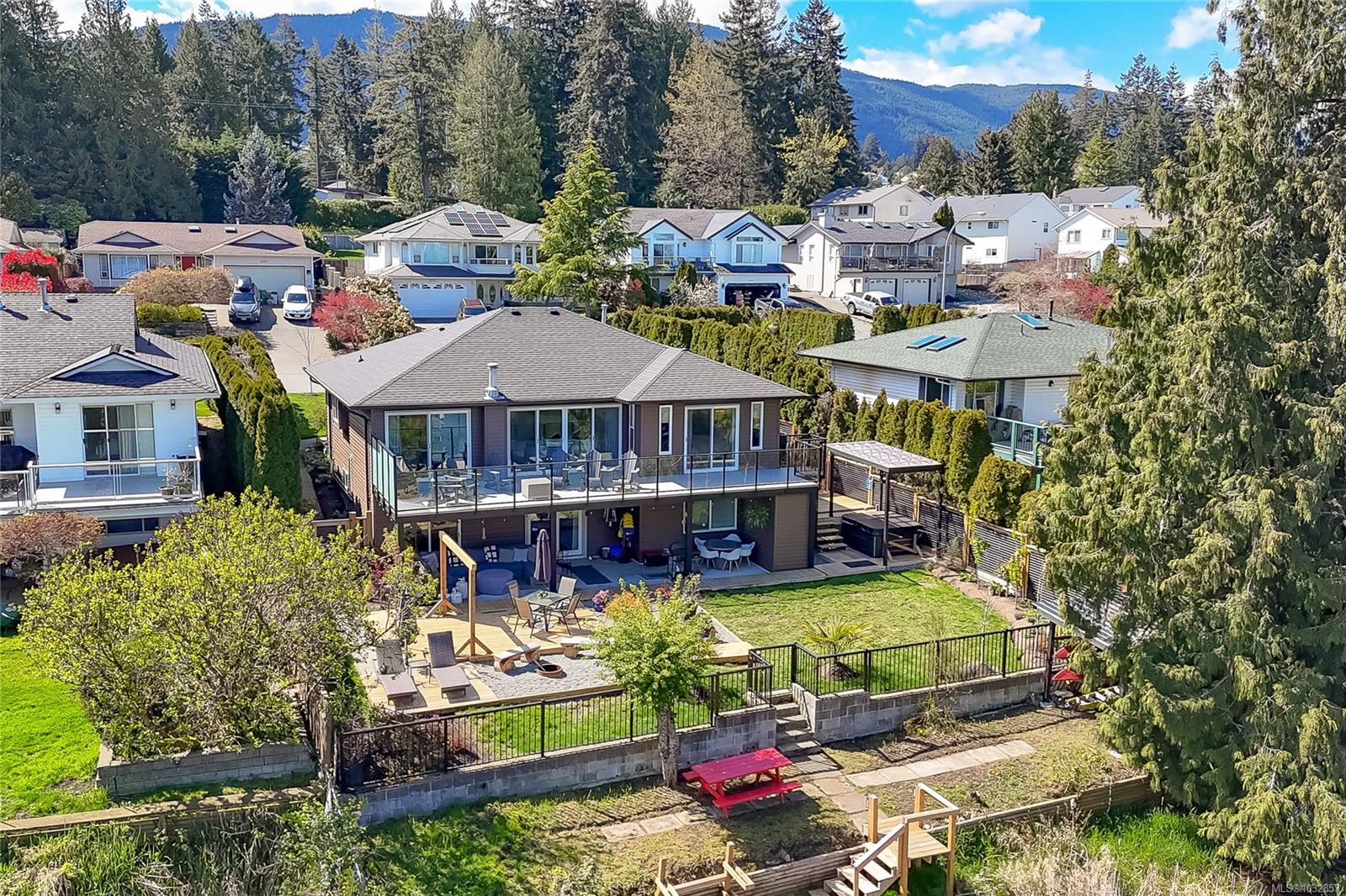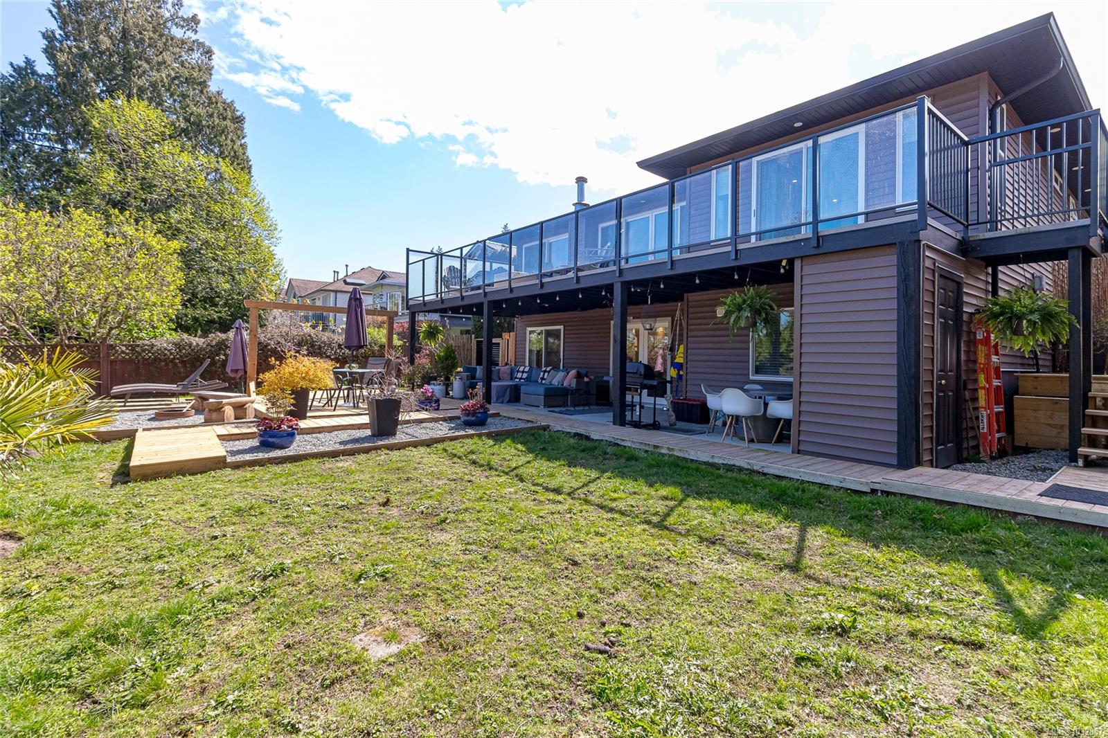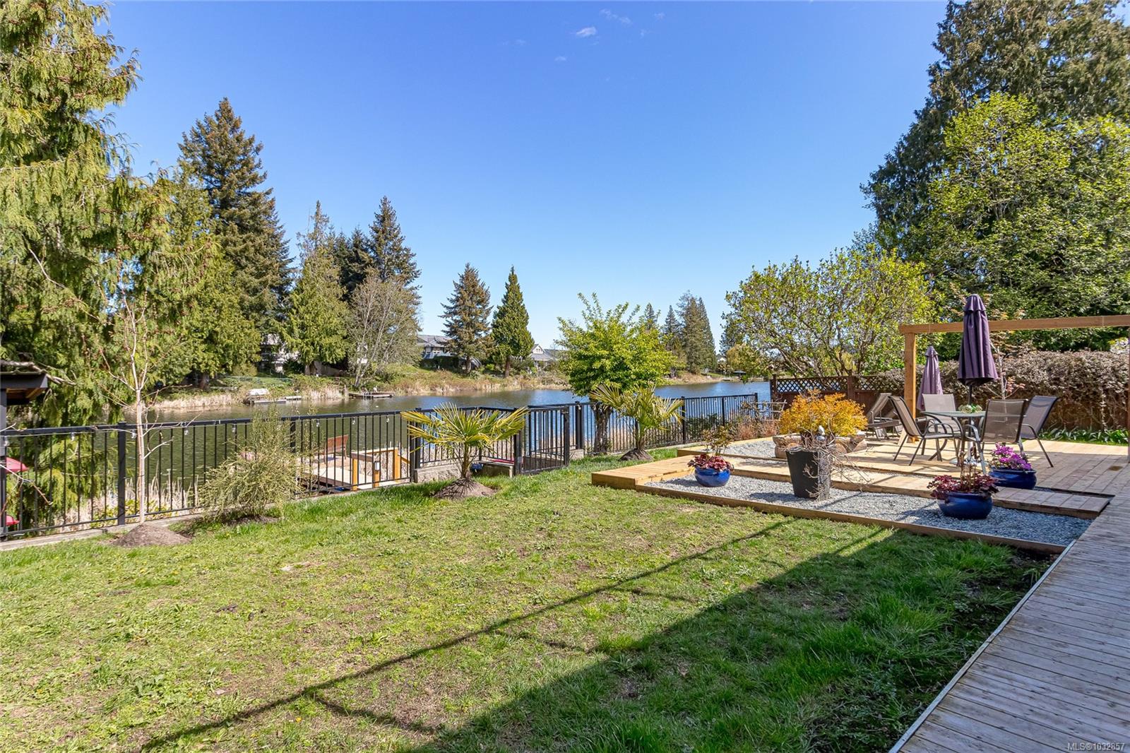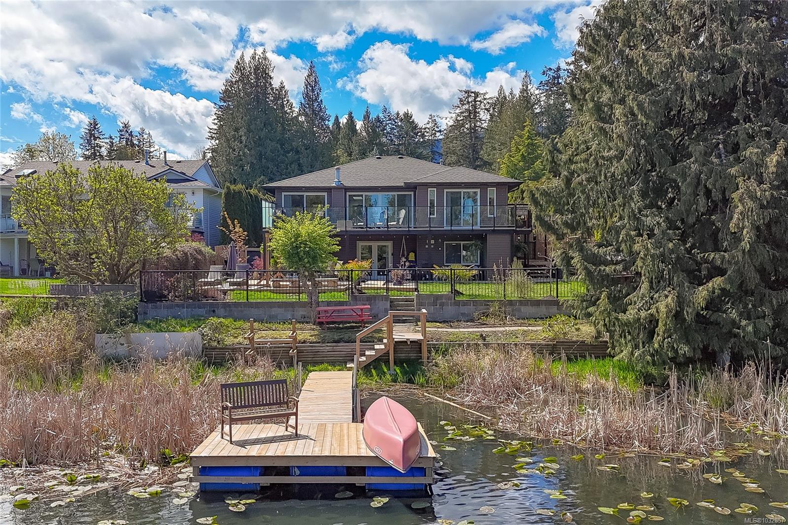 Experience lakefront living at its finest on beautiful Cathers Lake in the desirable South Jingle Pot area of Nanaimo. This stunning home is truly a one-of-a-kind property where no expense has been spared, with modern updates throughout, including all new exterior siding, windows and doors, and every inch meticulously finished. The fully landscaped yard creates a private, resort-like setting. The bright, open-concept main floor is filled with natural light from expansive windows and features an amazing kitchen with quartz countertops, a huge island, new stainless steel appliances, including a side-by-side full-sized fridge and freezer combo, as well as a butler’s pantry, perfect for both everyday living and entertaining. Also on the main level are a versatile den, second bedroom, well-appointed main bathroom with dual sinks and a soaker tub/shower combination and the spacious primary suite offering ample closet space, a brand-new 4-piece ensuite, and direct access to an oversized deck overlooking the lake, an ideal spot to unwind and take in the peaceful surroundings. Downstairs you’ll find a laundry room with attached storage, a third bedroom with walk-in closet, and a comfortable family room, along with a beautifully finished one-bedroom open concept legal suite with its own laundry and access to the back patio. Currently used as a short-term rental, the suite has generated up to $225 a night, offering excellent income potential. Outside, the fully fenced yard features multiple seating areas, a hot tub, and access to a private dock where you can enjoy paddling, bird watching, and the serenity of waterfront living. Located just minutes from schools, shopping, parks, and recreation, this exceptional home offers the perfect blend of lifestyle and convenience. This is a property that truly must be seen to be appreciated. Do not miss out! Make your appointment to view this amazing home today. All measurements are approximate and should be verified if important.