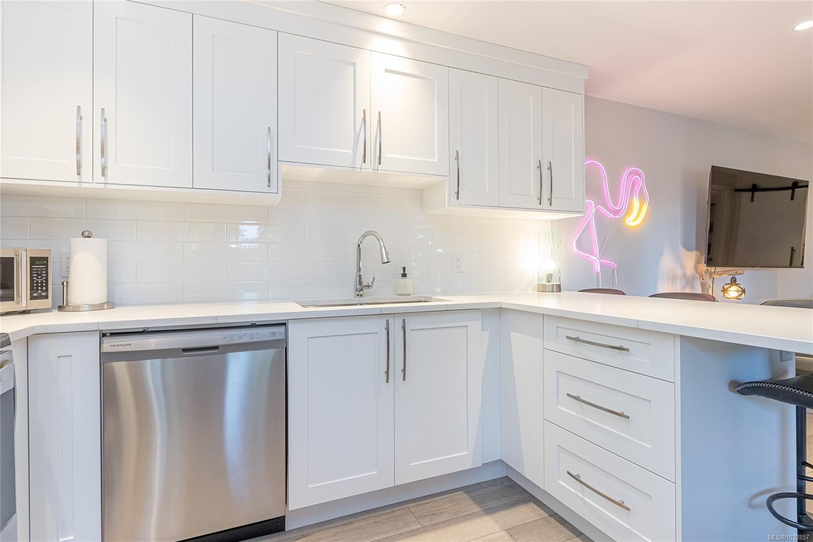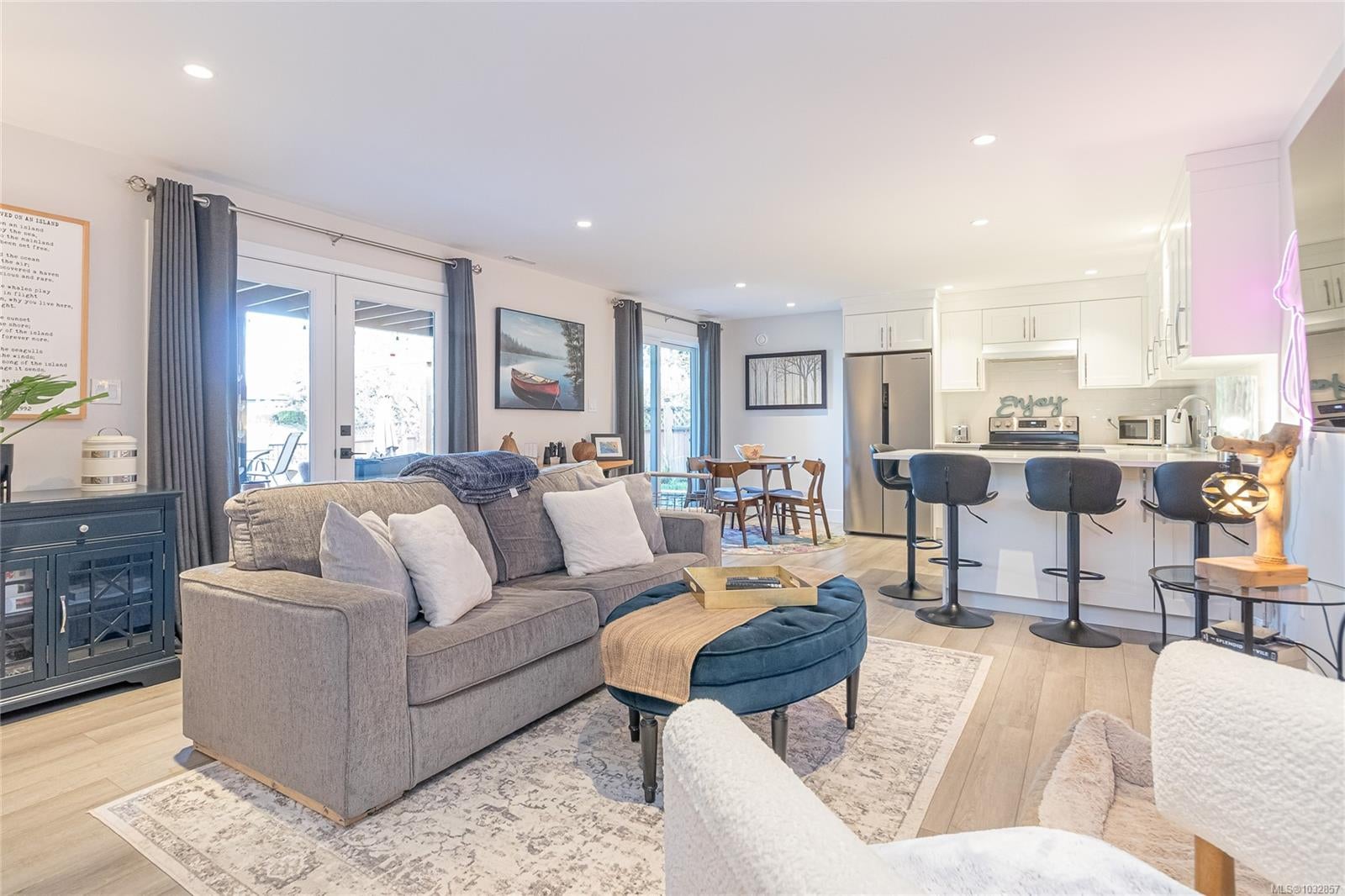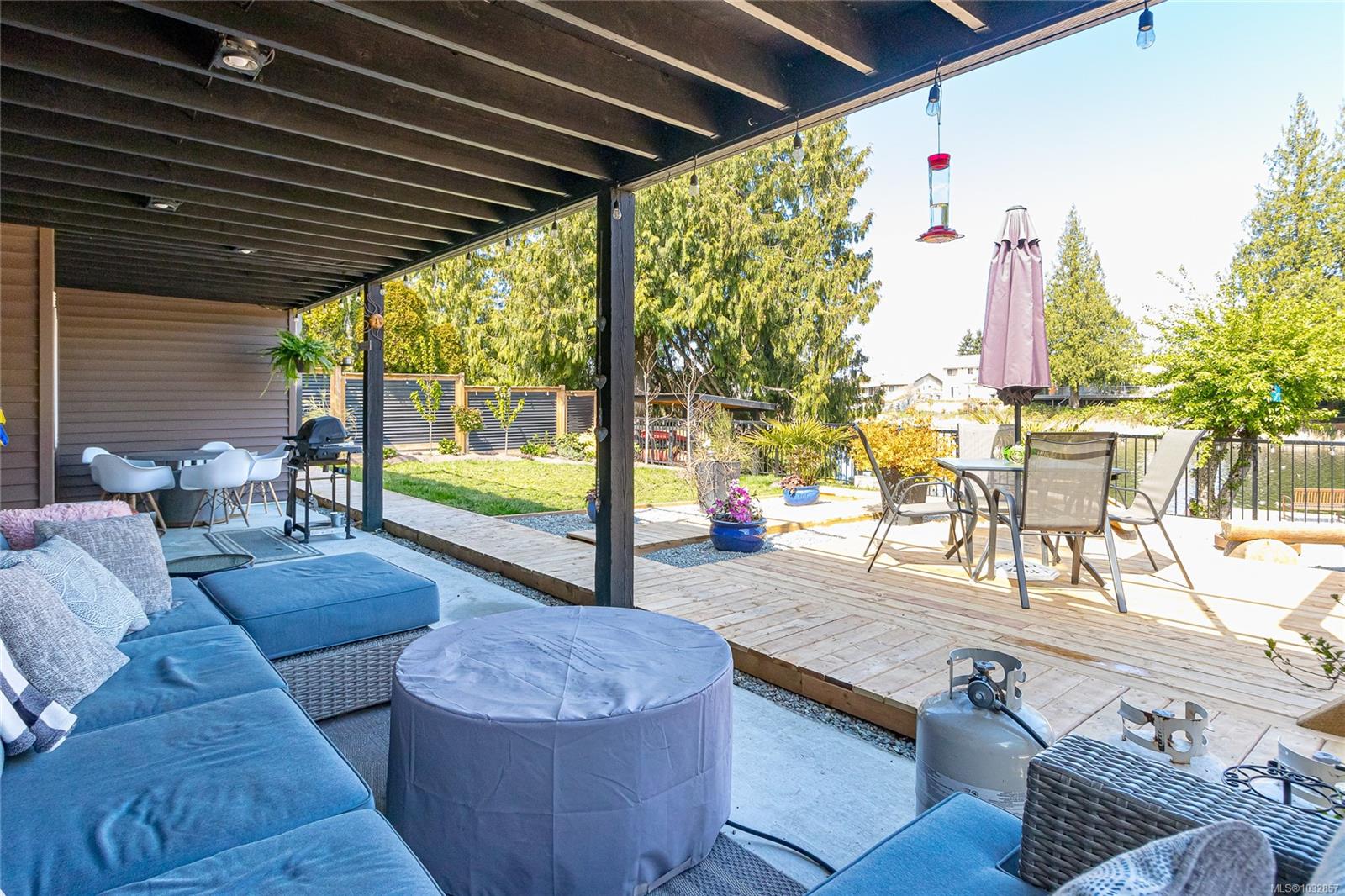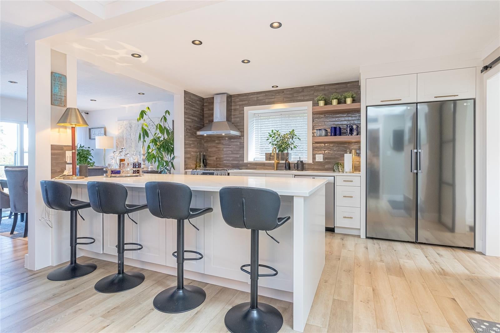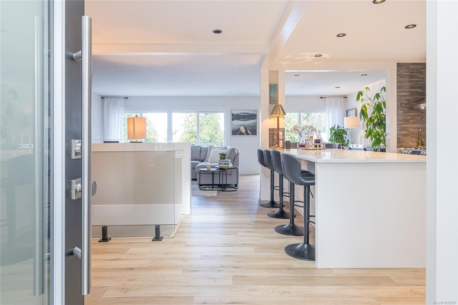 Experience lakefront living at its finest on beautiful Cathers Lake in the desirable South Jingle Pot area of Nanaimo. This stunning home is truly a one-of-a-kind property where no expense has been spared, with modern updates throughout, including all new exterior siding, windows and doors, and every inch meticulously finished. The fully landscaped yard creates a private, resort-like setting. The bright, open-concept main floor is filled with natural light from expansive windows and features an amazing kitchen with quartz countertops, a huge island, new stainless steel appliances, including a side-by-side full-sized fridge and freezer combo, as well as a butler’s pantry, perfect for both everyday living and entertaining. Also on the main level are a versatile den, second bedroom, well-appointed main bathroom with dual sinks and a soaker tub/shower combination and the spacious primary suite offering ample closet space, a brand-new 4-piece ensuite, and direct access to an oversized deck overlooking the lake, an ideal spot to unwind and take in the peaceful surroundings. Downstairs you’ll find a laundry room with attached storage, a third bedroom with walk-in closet, and a comfortable family room, along with a beautifully finished one-bedroom open concept legal suite with its own laundry and access to the back patio. Currently used as a short-term rental, the suite has generated up to $225 a night, offering excellent income potential. Outside, the fully fenced yard features multiple seating areas, a hot tub, and access to a private dock where you can enjoy paddling, bird watching, and the serenity of waterfront living. Located just minutes from schools, shopping, parks, and recreation, this exceptional home offers the perfect blend of lifestyle and convenience. This is a property that truly must be seen to be appreciated. Do not miss out! Make your appointment to view this amazing home today. All measurements are approximate and should be verified if important.