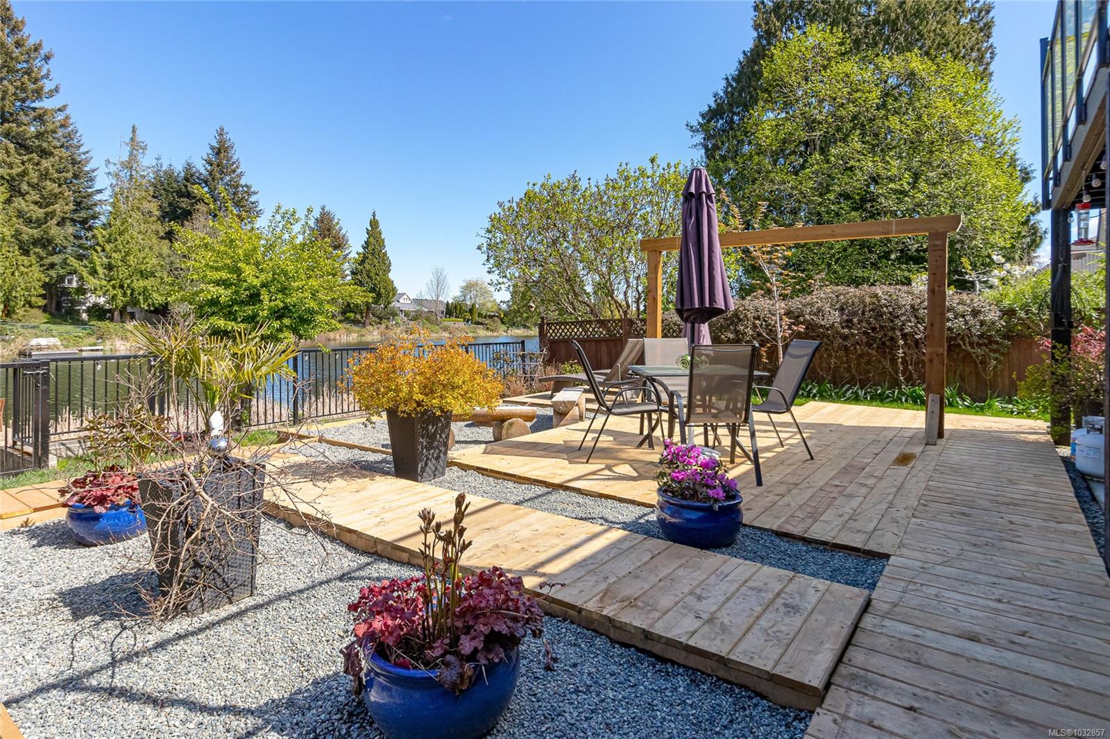 Balcony/Patio, Central Location, Cul-De-Sac, Curb & Gutter, Dock/Moorage, Easy Access, Fenced, Fencing: Full, Garden, Ground Level Main Floor, Landscaped, Lighting, Low Maintenance Yard, Near Golf Course, No Through Road, Park Setting, Primary Bedroom on Main, Private, Quiet Area, Recreation Nearby, Rectangular Lot, Serviced, Shopping Nearby, Sidewalk, Walk on Waterfront
